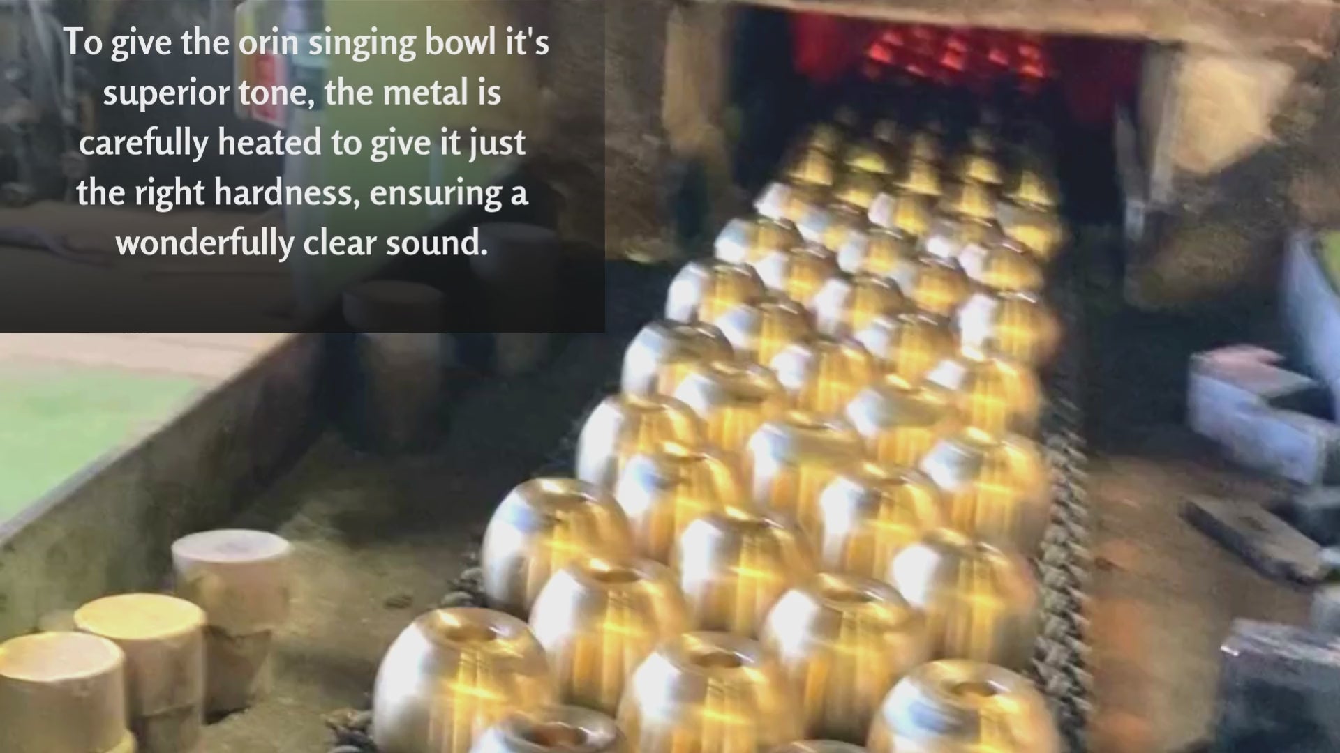To give the orin singing bowl it's superior tone, craftsmen carefully heat the metal to give it just the right hardness, ensuring a wonderfully clear sound.